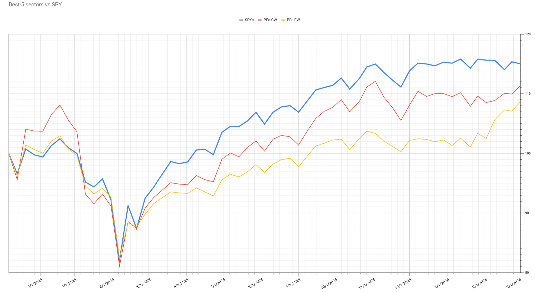 - Portfolios (CW & EW) are starting to catch up with SPY.