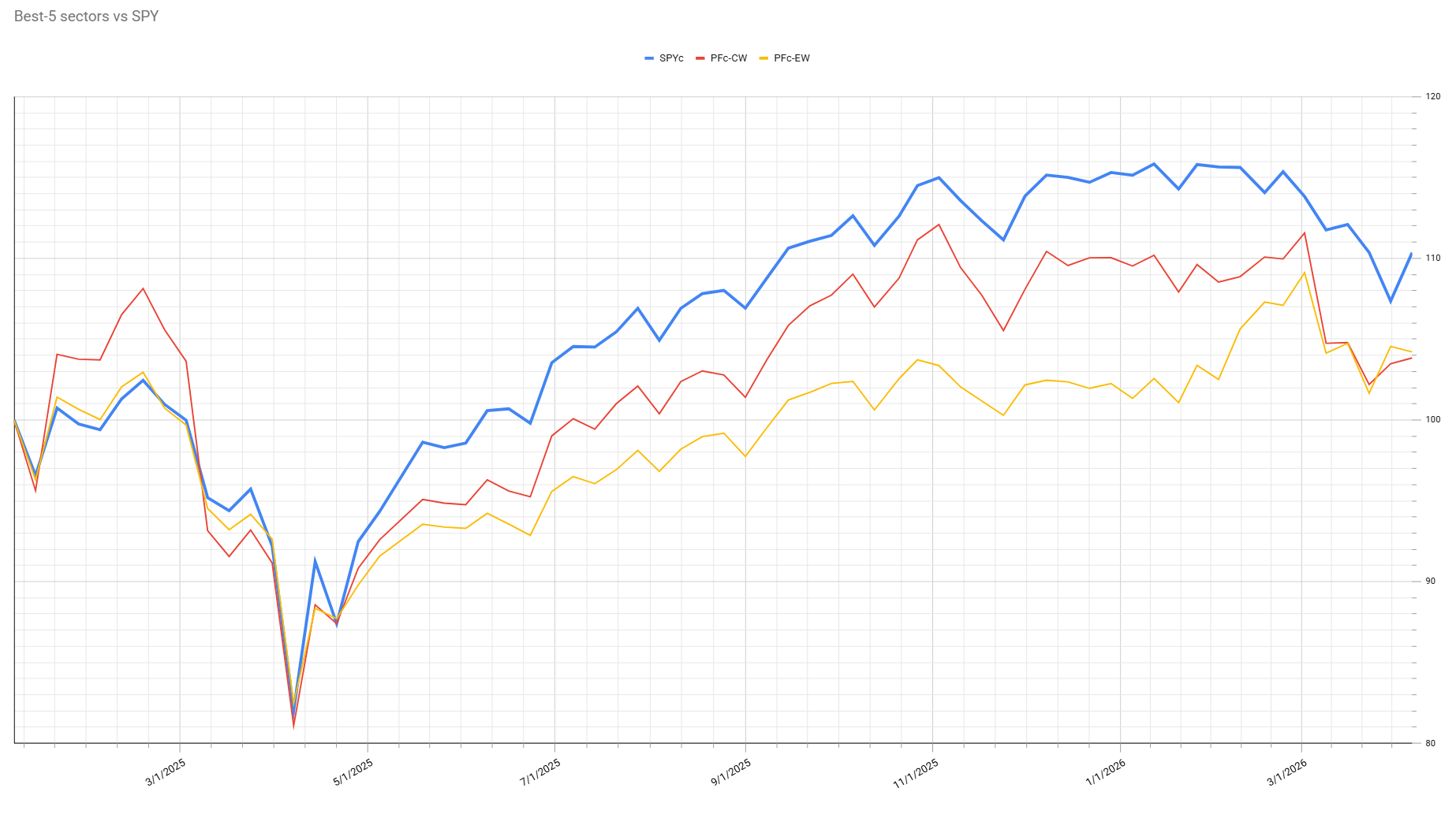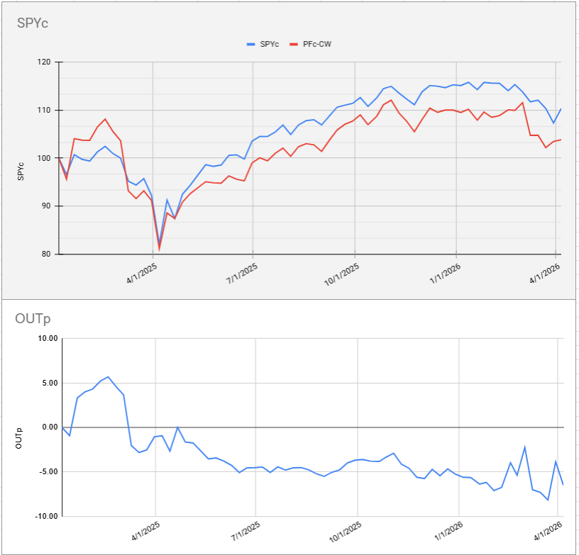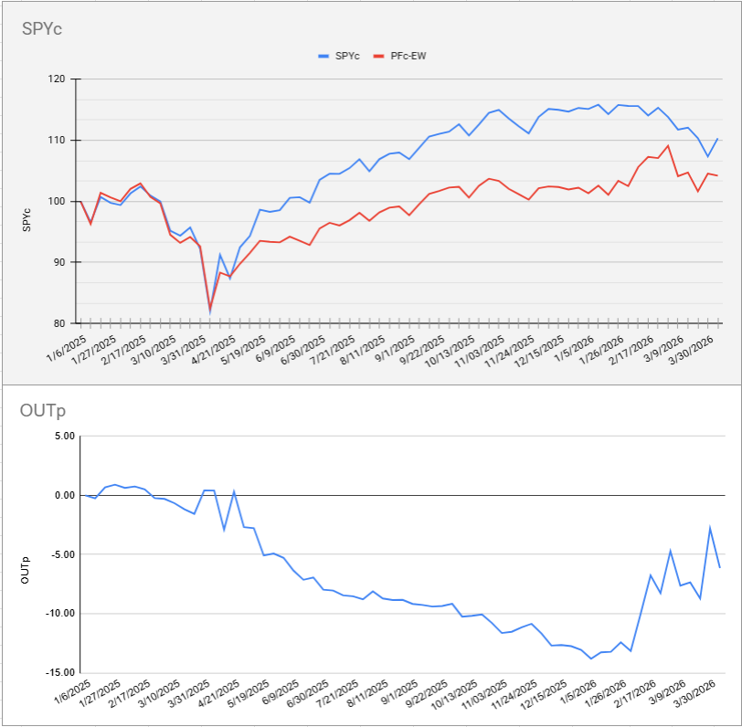 The strong week for the S&P 500 resulted in a weaker week for defensive portfolios, widening the underperformance gap to about five or six percent for both cap-weighted and equal-weighted portfolios. This is due to the recent surge in the S&P 500. However, given the current defensive composition of the top five sectors, a weaker market would likely benefit these portfolios, as they are positioned to outperform in such periods.