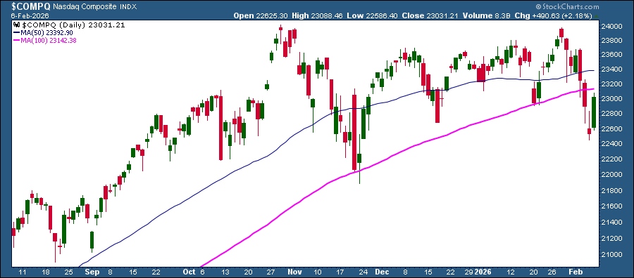 Of the three major indexes, the Nasdaq Composite ($COMPQ) took the biggest hit. No surprise there; software stocks have been under a lot of pressure, and Thursday’s close didn’t inspire much confidence. Add in Amazon’s slide after the close, and it felt like the week could end ugly.