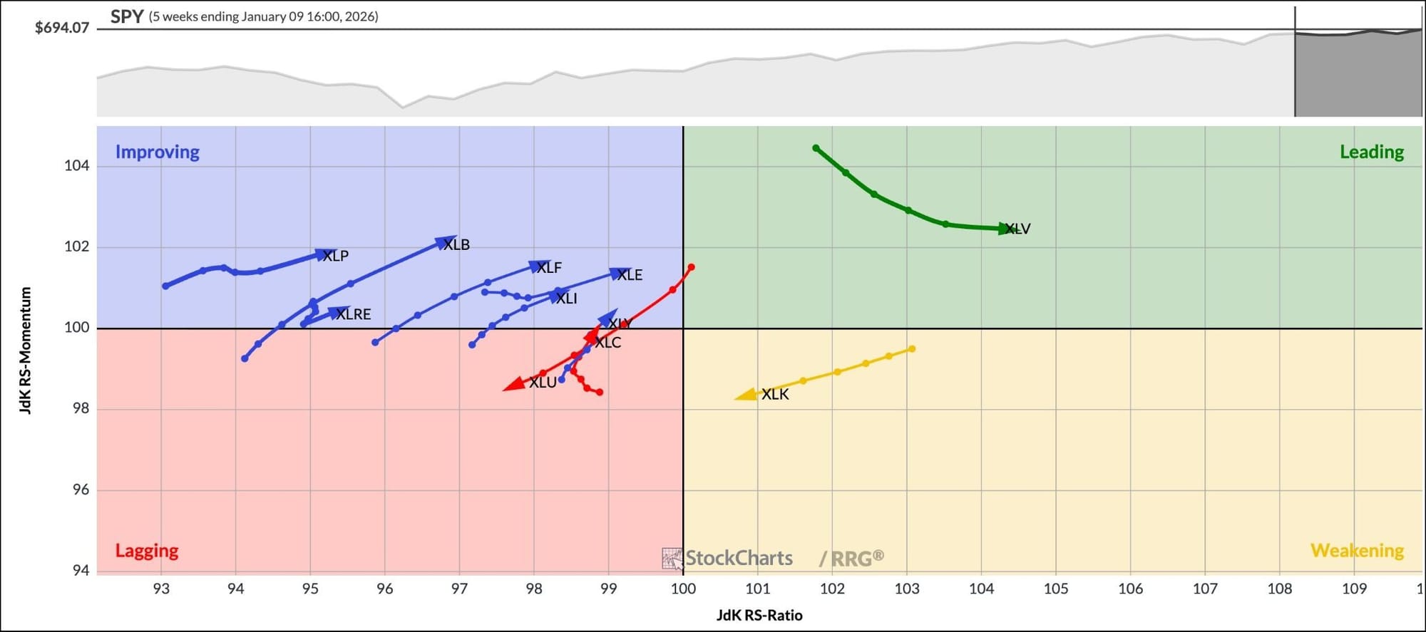 You can see this “broader participation” theme come alive in the Relative Rotation Graphs® for the S&P 500 Sector ETFs. As the saying goes, “a picture is worth a thousand words,” and that couldn’t be truer than when you look at the chart below.