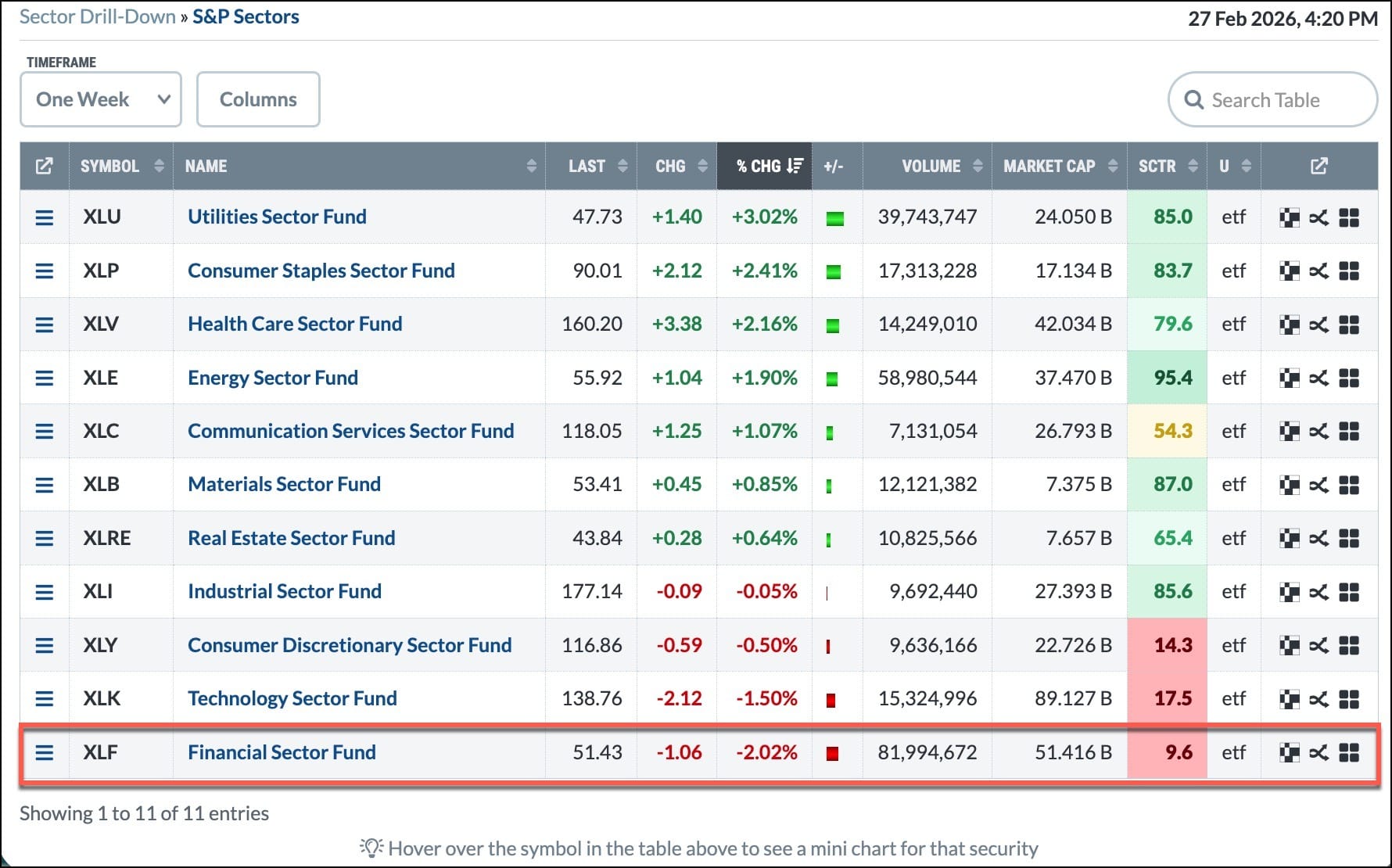 Tech stocks took a huge hit this week, especially software stocks. The pain is also being felt in the Financials sector. For the week, it was the weakest sector performer, with Technology coming in second-weakest.