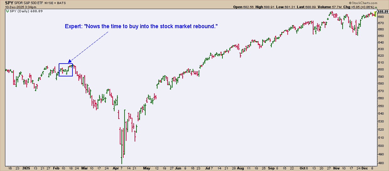 Let’s take a look at this piece of advice: “Now’s the time to buy into the stock market rebound,” which you might have heard in early February 2025. Here’s what the market looked like when the opinion was aired.