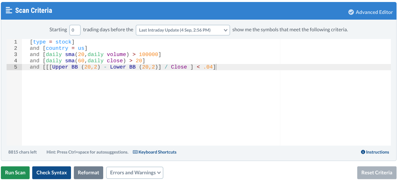 If you suspect this type of strategy might be your “thing,” and you want to cast a wide net to find stocks that are being squeezed, the good news is that you can easily run a scan.