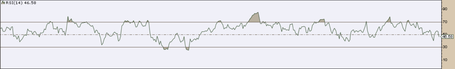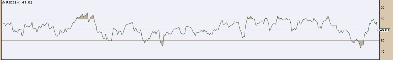 Notice how the RSI readings coincide with critical breakout levels (dotted blue lines) on the chart. Was the RSI reading minus the chart close to actual price action? Arguably so.