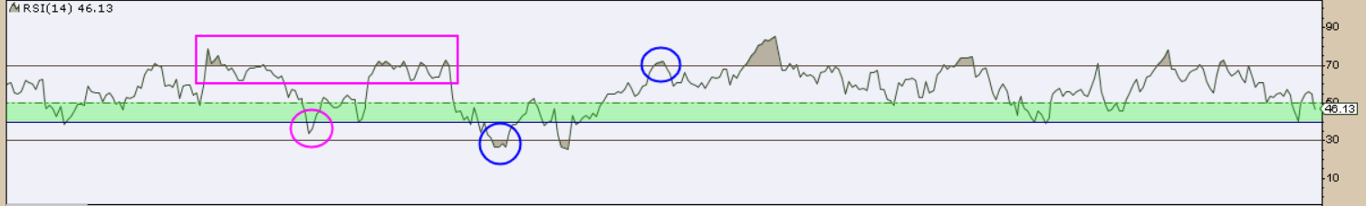 Constance Brown showed that RSI behaves differently depending on the trend.