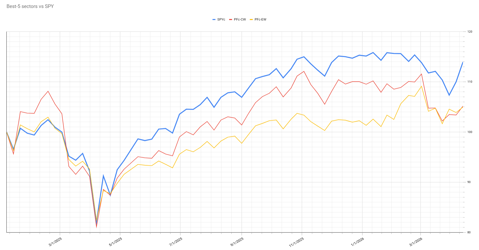 After a robust week for the S&P 500, which gained nearly 3.5%, the composition of the top five sectors remains unchanged. Despite ongoing geopolitical volatility, the sector rankings have held steady, though this turbulence has impacted portfolio performance. As long as the rankings remain consistent, I plan to sit out the current volatility and maintain the existing strategy.