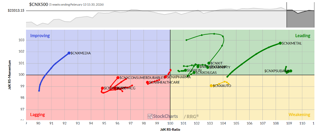 Important Note: RRG™ charts show the relative strength and momentum of a group of stocks. In the above chart, they show relative performance against NIFTY500 Index (Broader Markets) and should not be used directly as buy or sell signals.